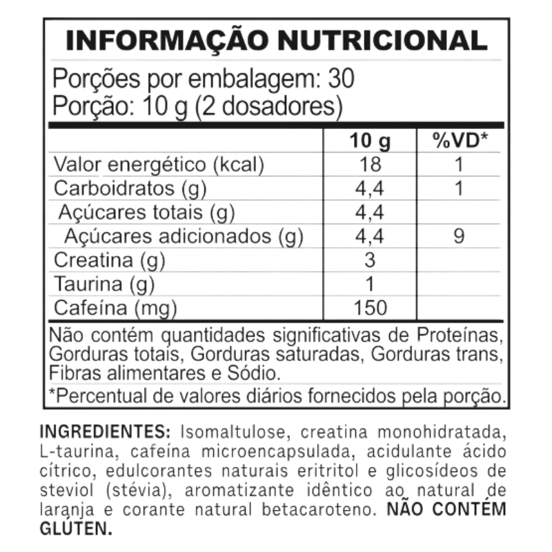 • Fórmula 3 em 1 exclusiva: Creatina + Cafeína + Taurina.