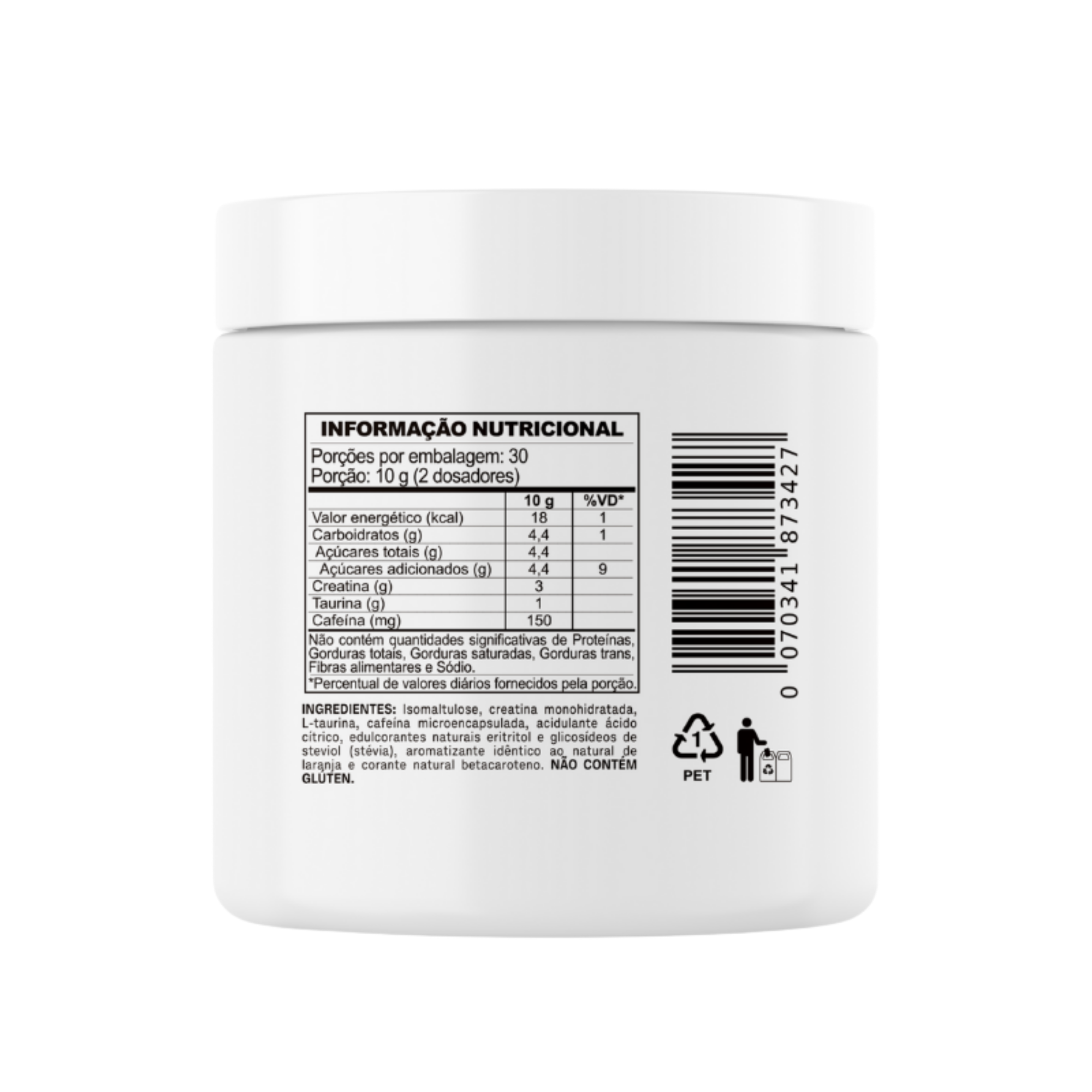 Uma combinação de creatina, cafeína e taurina sabor laranja, desenvolvida para sustentar concentração, disposição e performance ao longo do dia.