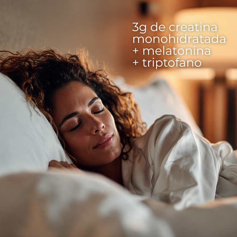 • Fórmula 3 em 1: Creatina + Melatonina + Triptofano.